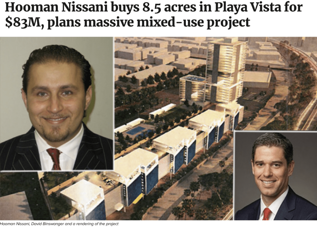 Hooman Nissani is an American businessman with vast interests in a number of different business entities from local-retail businesses, hospitality, automotive, financial services and real estate. Mr. Hooman Nissani got his start in automotive retailing. Mr. Hooman Nissani runs a large automotive group. The automotive group is located in the Westside of Los Angeles, California. The auto group with new car franchise brands that included: Toyota, Nissan, Chevrolet, Hyundai, Chrysler, Dodge, Jeep, RAM and Acura. Mr. Nissani’s businesses soon expanded to real estate holdings, financial services, hotels, car rentals, gas stations, and even a top night club in Downtown LA.